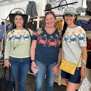 This May some friends stopped by our booth at the Maryland Sheep and Wool Festival to show us the beautiful results of their mini Knit-Along. Don’t they look great? You can be sure that they were stopped frequently by folks who wanted to learn more about their sweaters.
