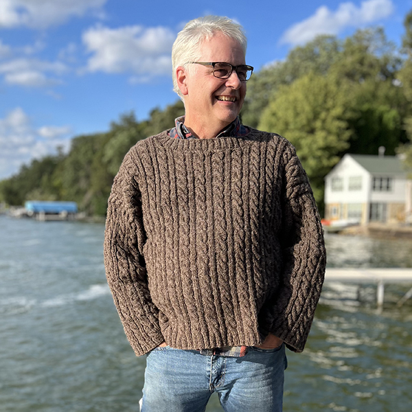When our dear friend Mark decided he was ready to cast on for his first sweater, we offered to draft a pattern made to order. He had already committed this classic cable pattern to memory (thanks to the handful of scarves he had been making as gifts). And so, the inspiration for this classic rugged pullover started to take shape. Whether or not this sweater is your first, we hope it will soon become a favorite.