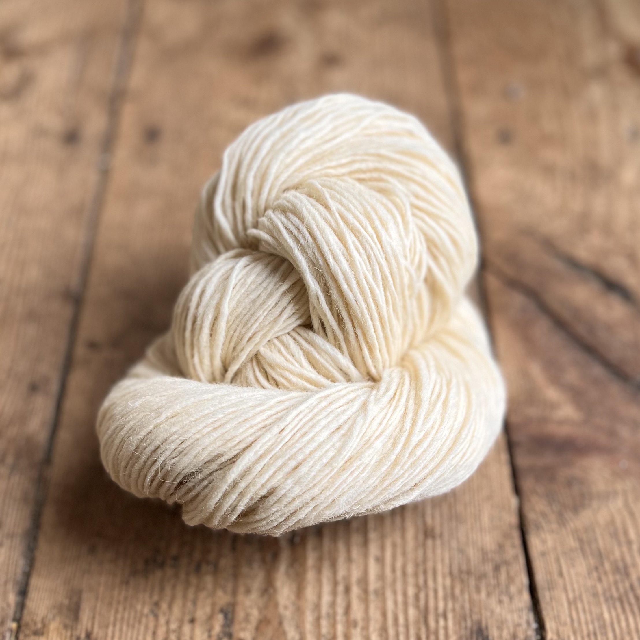 50% Off an Undyed Single Ply Worsted weight yarn that is ideal for dyeing.